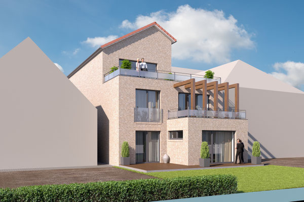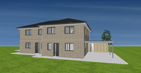 Hier entstehen zwei moderne, individuelle und qualitativ hochwertige Doppelhaushälften auf einem gut geschnittenen Grundstück. Ganz in der Nähe einer Schule, eines Spielplatzes und umgeben von einer familienfreundlichen Nachbarschaft.